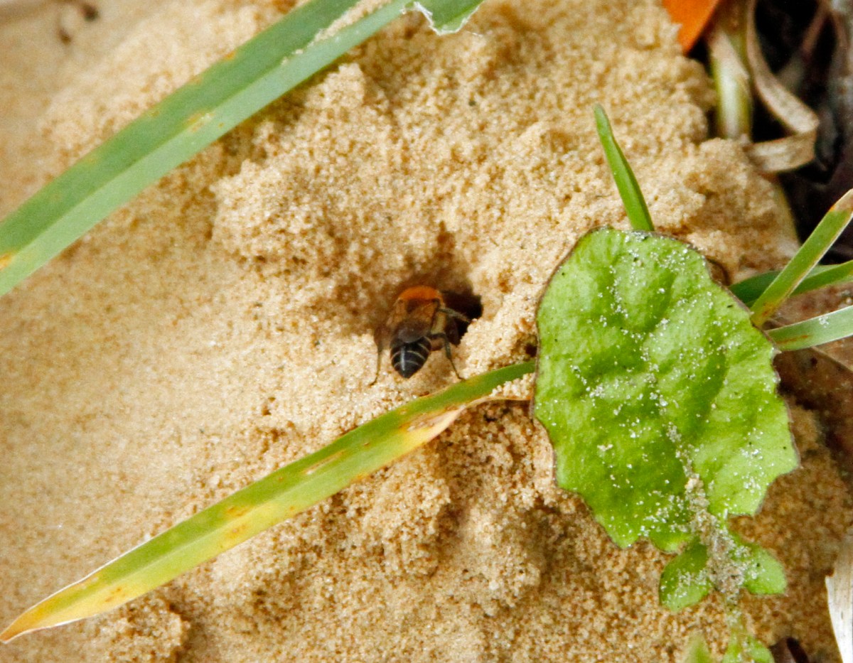 Solitary Bee Entering Tunnel