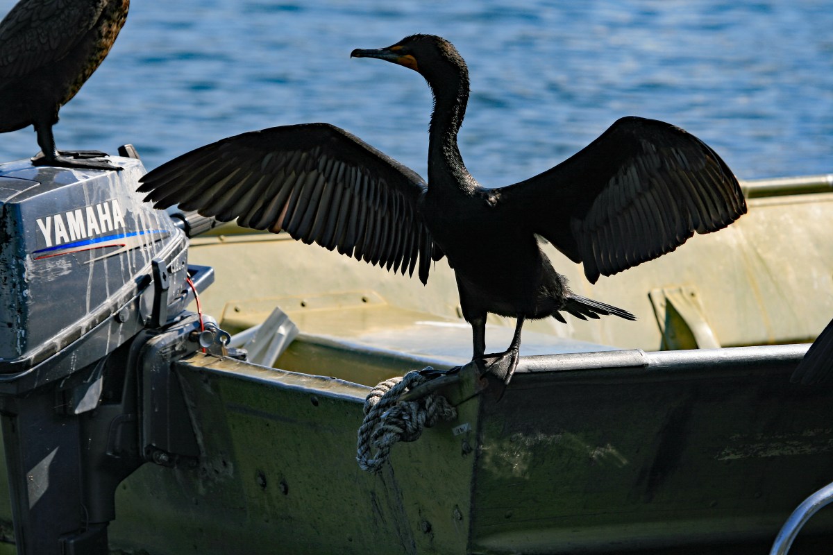 Cormorant Outstretched Wings on Boat