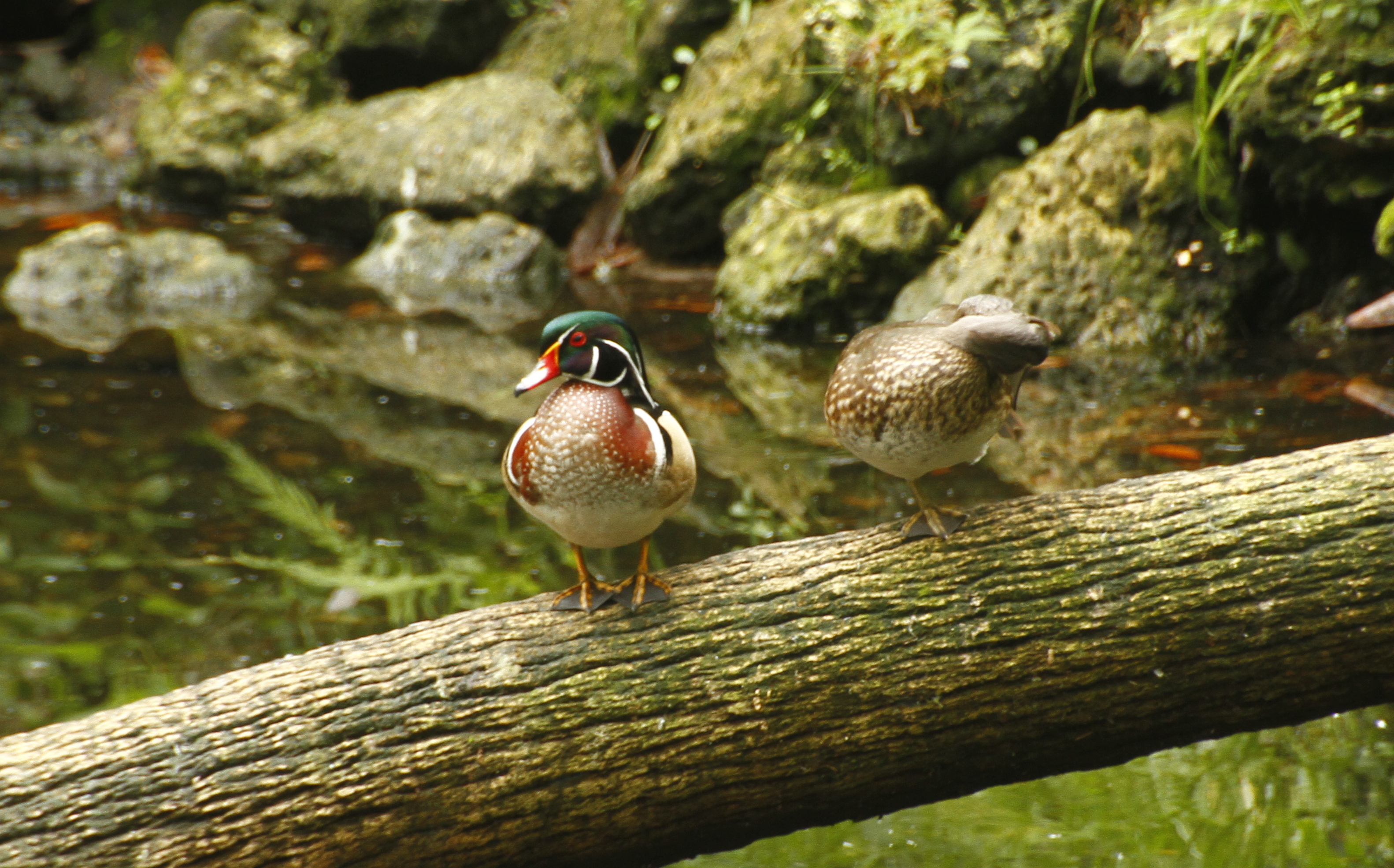 Wood Ducks on Log